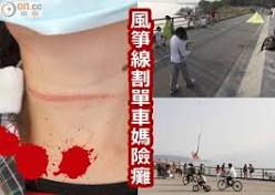 風箏線割喉單車婦險癱 【on.cc東網專訊】 特技風箏𠝹頸險癱,風箏和單車爭路險象環生。前晚大埔船灣淡水湖主壩發生單車友被巨型特技風箏線𠝹頸的駭人意外,傷者倒地後一度 ...